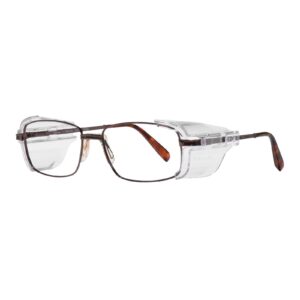 The PENTAX CLASSIC 1 are stainless steel frames, prescription safety glasses; corrosion resistant and hypoallergenic. The spring hinges and adjustable nose pads help improve fitting. Meets ANSI Z87.1 standards for high mass & high velocity impact resistance. Side shields must be worn to meet ANSI Z87.1 lateral coverage protection standards.